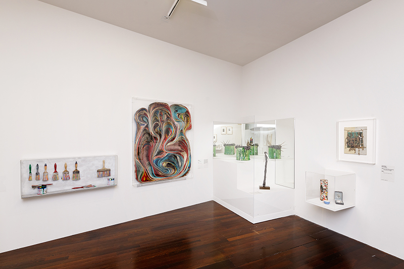 À gauche, Pavlos, Neuf pinceaux et deux pots à peinture sur une étagère, 1994