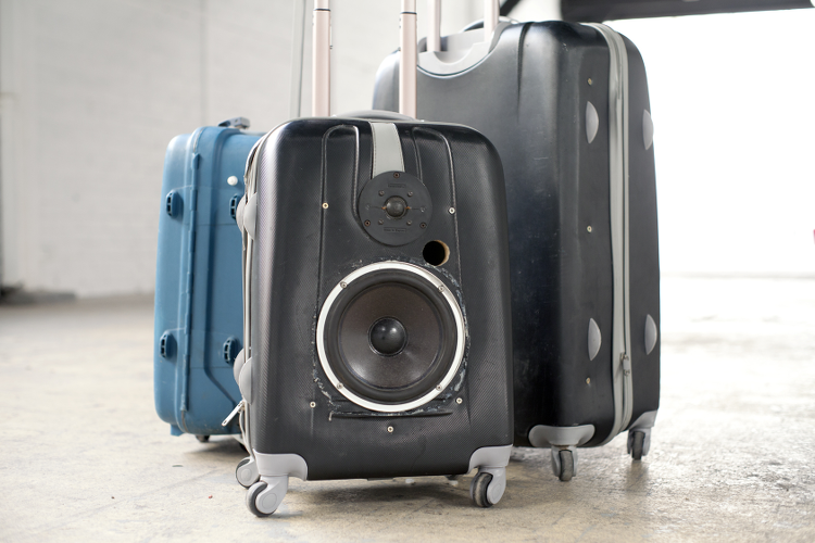 2 valises transformées en mini-soundsystem sur roulette, pouvant être empruntées par les visiteurs du MAC/VAL le temps de leurs déambulations. Un mini-jack est accessible et permet ainsi de parcourir les expositions tout en écoutant sa playlist préférée.