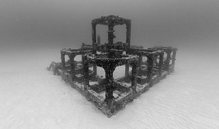 Acier inoxydable, structure d’assemblage en acier doux, verre, photographies argentiques noir et blanc contrecollées sur carton
