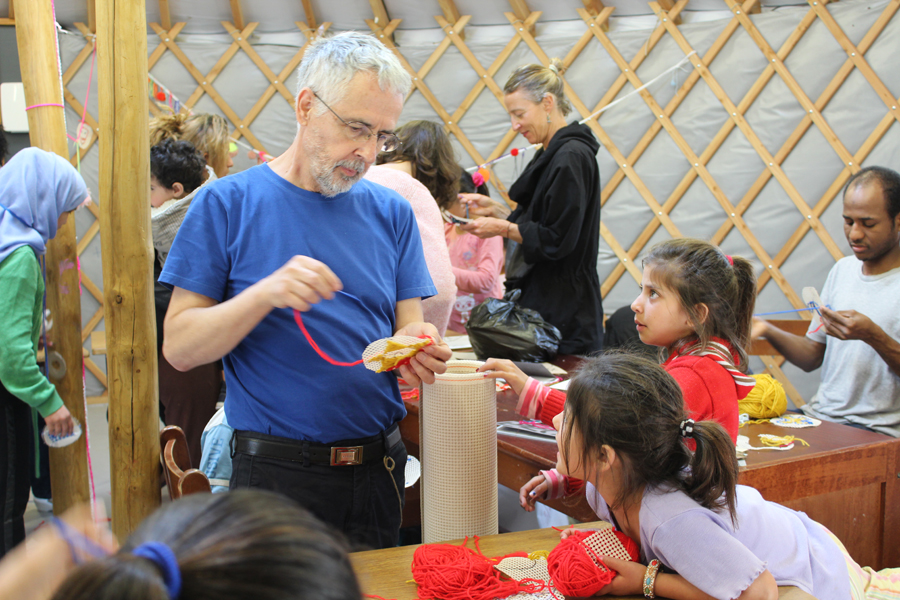Au Centre d’hébergement d’urgence d’Ivry géré par Emmaüs Solidarité, les ateliers d’Aurélie Mathigot ont pris place dans une des yourtes destinées aux activités collectives.