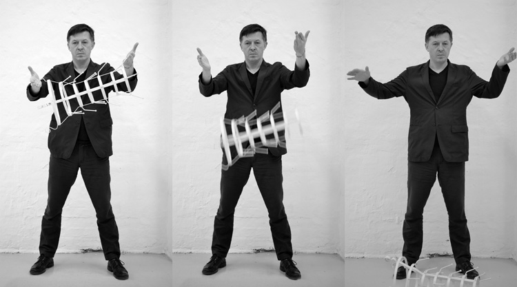 Thomas Eller est un artiste, écrivain et commissaire allemand. Depuis plusieurs années, il mène une réflexion où se mêlent la déconstruction de la modernité artistique et les théories postcoloniales. La performance proposée au MAC VAL fait partie de l’ensemble « THE White Male Complex », initié en 2012 lors d’une exposition au SAVVY contemporary (Berlin), dans ce lieu qui se définit lui-même comme un laboratoire de formes et d’idées proposant un dialogue entre la culture africaine et le reste du monde. Dans cette performance, Thomas Eller revisite le premier readymade de Marcel Duchamp, son fameux porte-bouteilles acquis en 1914 au rayon quincaillerie du Bazar de l’Hôtel-de-Ville.