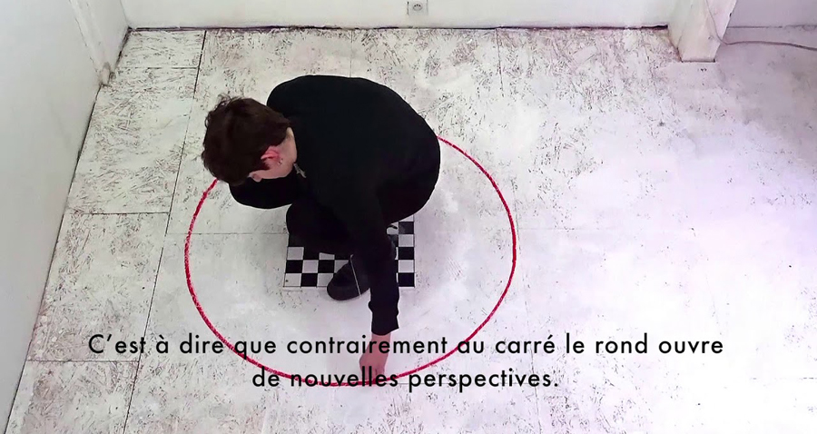 « La vidéo I Like Society and Society Likes Me expose l’artiste qui se questionne sur sa propre condition d’existence. En conflit avec lui-même, il fait sa propre interview. Est-ce de la folie ? Le mystère reste entier. Il est question de rond et de carré, de force d’être et de force née. Pour le reste, au spectateur d’en juger par lui-même. »