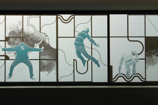 “Le panorama a été construit à partir d’une grille à cellules régulières. L’idée était d’obtenir un code de variation dans les lignes et les courbes afin de créer une partition qui fasse réponse à la richesse gestuelle des figures hadoken.