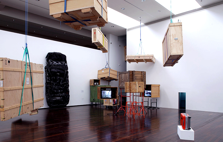 Éric Hattan se pose en metteur en scène en captant des moments insolites, rares ou insignifiants. Saisir ces instants où quelque chose vacille - c’est ce qu’il propose dans ses installations qui se déploient comme un paysage mental. Centrale chez Hattan, cette notion de paysage intègre à la fois l’histoire et les qualités spatiales du lieu, le souvenir d’une œuvre, d’une matrice et montre combien l’exposition est pour lui endroit d’écriture, générateur de visions, de matières, de projections. Pour le MAC VAL, Éric Hattan retrouve ses pièces anciennes issues de ces voyages, s’insinue dans le parcours de la collection pour dialoguer avec les œuvres et l’architecture. L’artiste choisit de suspendre des caisses de transport qui habitent les grandes hauteurs sous plafond des salles du musée, révélant cette qualité architecturale propre au lieu. Il dissémine également dans les différents espaces d’exposition des vidéos, telles un fil d’Ariane guidant le visiteur.