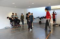 L’enjeu était, pour chaque participant, de travailler sur le rapport à l’espace, sa présence dans un lieu donné, sa corporéité, son lien avec les autres et de jouer ensemble avec les distances et les proximités, à travers des déplacements au rythme de la musique.