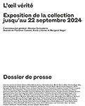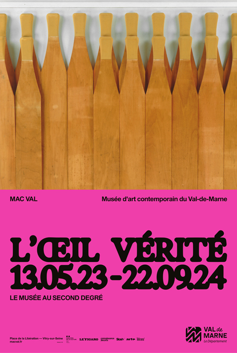 Sous le signe de Gérard Genette et de son ouvrage Palimpsestes. La littérature au second degré (1982), cette nouvelle exposition de la collection a souhaité répondre à une demande : l’envie de revoir ou même de retrouver des œuvres des collections permanentes qui, pour nombre d’entre elles, n’avaient pas été montrées depuis l’ouverture du musée en 2005. Il est rapidement apparu qu’il était possible d’écrire, selon une unité de temps et de lieu, une sorte d’histoire de l’art contemporain en France. Bien sûr les artistes qui ont participé de cette histoire ne sont pas forcément conservés au MAC VAL, toutefois les principaux s’y retrouvent et peuvent en donner, par conséquent, une vue assez juste. Entre la première œuvre de ce parcours et la dernière, « L’œil vérité » éclaire la naissance d’une distinction entre art moderne et contemporain et ses ambivalences, celle-ci ne s’est pas faite immédiatement contrairement à ce que les historiennes et les historiens de l’art ont pu dire en avançant la date un peu trop commode de 1945. Cette nouvelle présentation est le récit d’une distinction et d’une construction critique et historienne. Il s’avère, qu’en suivant les mouvements, cet accrochage relate les maints débats qui ont servi pour établir des signes distinctifs entre moderne et contemporain. Certes, s’ils sont contestables et parfois presque interchangeables, ils ont toutefois le mérite d’établir des repères. Ce nouvel opus offre une réflexion sur le passage entre un art moderne, traditionnellement défini en rupture et un art contemporain qui ne se satisfait pas simplement de ce prérequis. Ce n’est donc plus simplement des notions historiques ou chronologiques mais une nouvelle relation aux problématiques de légitimation et de monstration. Il est important de noter que les œuvres semblent aussi transformer le public qui n’aura plus (ou de moins en moins) un rôle de consommation passive face à un récit trop bien ficelé. Le second degré indique clairement les limites d’un tel exercice et aussi ses bénéfices en terme de récit. Aussi a-t-il été question de solliciter l’œil à la manière de l’exposition mythique Responsive eye (1965) ou encore plus proche de L’œil moteur (2005). Plutôt que de structurer l’accrochage des collections en donnant le nom des mouvements, l’œil a été choisi comme dénominateur commun, autant d’yeux que Philippe Costamagna n’a pas hésité à passer au pluriel dans son Histoire d’œils (2016) pour rappeler l’importance du flair et de la sensibilité. C’est aussi au mode d’approche tel que Maurice Merleau-Ponty a pu le définir dans L’œil et l’esprit (1964) mêlant phénoménologie et perception, visible et sensible auquel ce premier opus de la collection fait allusion. Il joue et rompt à la fois avec certaines règles du regard et de la hauteur de vue et tente de prendre la vision sur le fait.