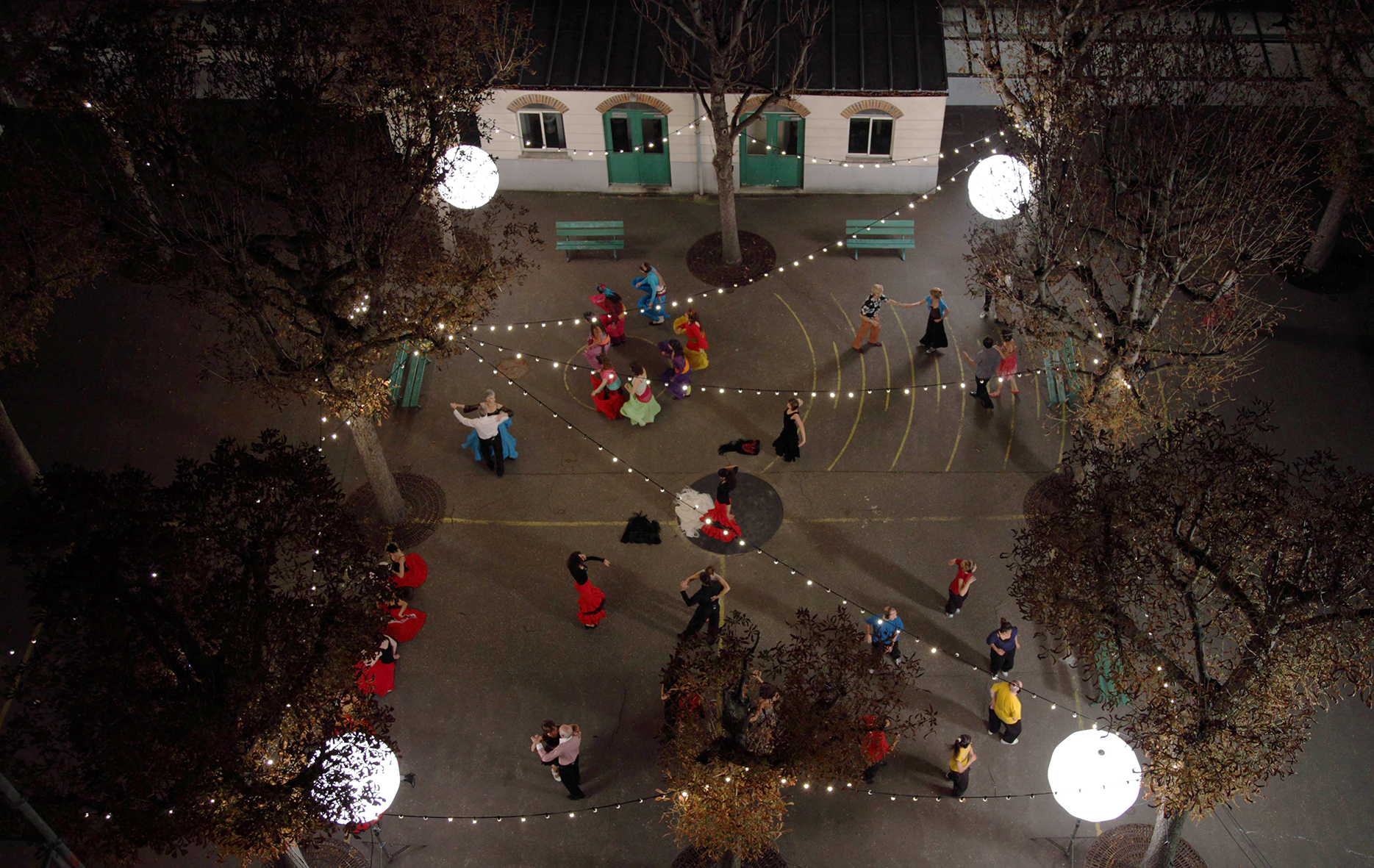 Thanks to the genre of portrait, she has developed a unique sensitivity to people’s relationship to their environment. Through a generally performative process, she stages situations conducive to the encounter of unknown people and usually removed communities in places that act like indicators of political, social, spatial and institutional contexts, in order to question their relationship to others, their background and the world. The artist is interested in the transgression of the codes of the public and private sphere, creating situations in which an intimate gesture –kissing, caressing, undressing, sleeping- is performed in public. The group portraits in which she studies, reinterprets, gathers or reproduces public rituals (gathering, protests, marches, dances, parties) foster the constitution and affirmation of a common social body as well as exchange and community life. Her work on the abolition of frontiers draws on a subtle balance between the organization of a community of people in a given time-space and the representation of the psychological depth of individuals.