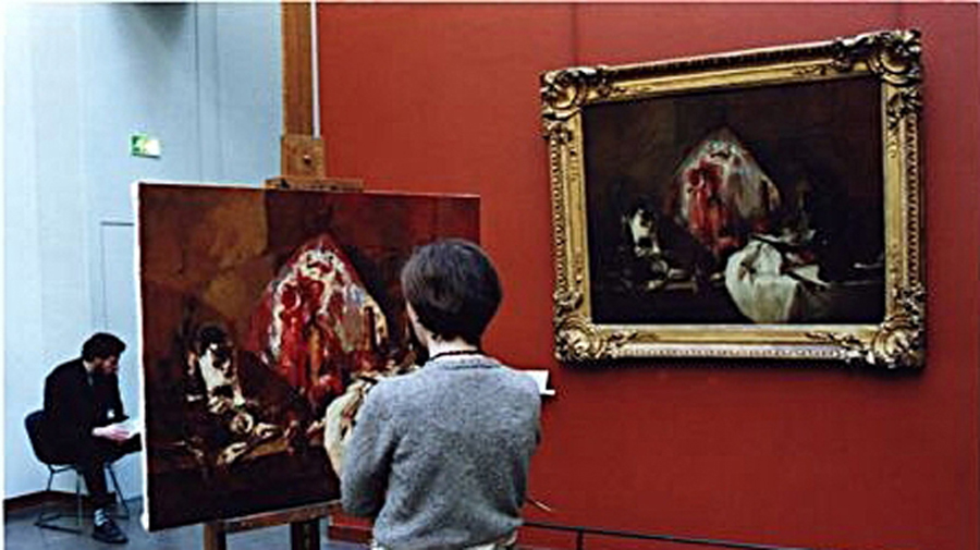 « Ce documentaire très sensible que l’on doit à Julien Devaux, auteur du célèbre film Wide Details on the Traces of Francis Alys (2006), présente d’une part l’histoire naissante de la jeune peintre Mélissa Pinon, et d’autre part, un pan plus large de l’histoire de la peinture. Je m’explique. Le sujet du film, c’est Mélissa Pinon au travers de la nature morte de Chardin qu’elle copie et de cette compréhension qu’elle mène jusqu’à son terme, celui de peindre une autre raie en ce 21e siècle. Car on le sait, ce tableau de La raie (1728) a été de nombreuses fois copié tant par Ensor, Boudin, Soutine que Matisse et abondamment commenté tant par Diderot que Proust, Faure, Wildentstein, toutes citations qui trament le film. Mais ce que ce film brasse au final, c’est le rapport avec la couleur, la teinte, la demi-teinte, la touche et la toile. C’est la tension entre le dépôt de peinture et l’économie de peinture pour réaliser un tableau qui représente la nature morte mais aussi une scène de genre. Car progressivement, l’on voit MP s’emparer d’un autre sujet étant les visiteurs dans le musée, ce qui lui permet de se donner du recul face à ces grands chef d’œuvres qu’elle admire. »