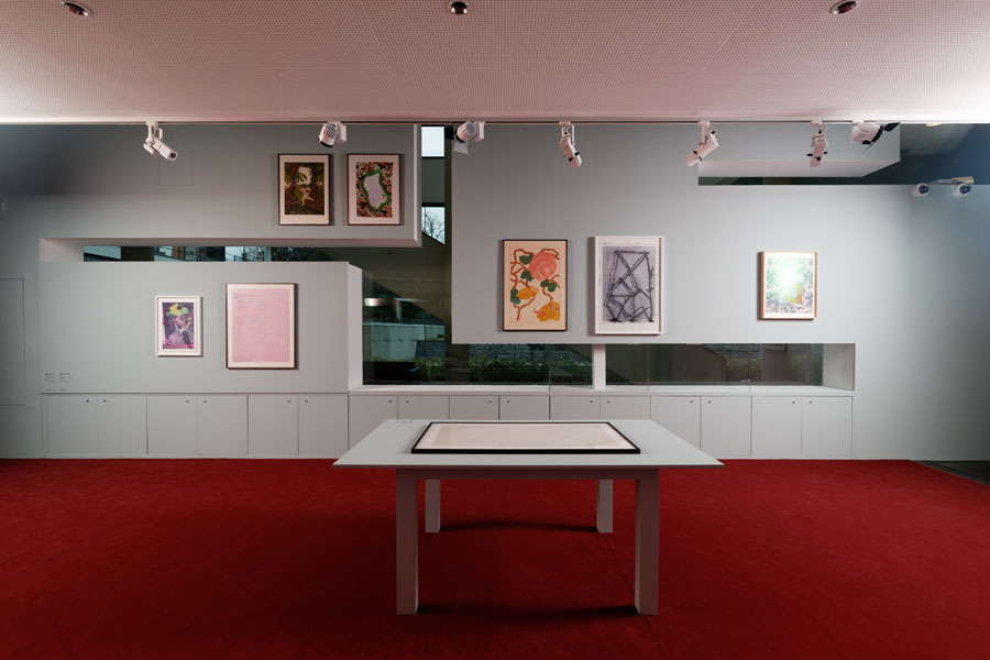 Le Salon est devenu le temps d’un accrochage une bonbonnière, autre nom qui aurait pu servir de titre à la présentation d’une partie du fonds d’estampes commandées chaque année par le Département du Val-de-Marne afin de valoriser un de ses jardins les plus remarquables la Roseraie située à L’Haÿ-les-Roses, et d’affirmer une démarche volontariste de commandes aux artistes.