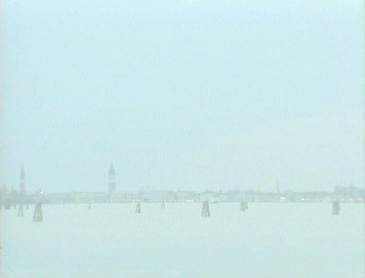 Venises est une vidéo montrant un plan fixe de la cité des doges pris de l’embarcadère du Lido au crépuscule. Le montage est formé d’une sélection de huit minutes de prises de vues réalisées pendant une demi-heure. Le temps est ici accéléré, mais l’œuvre donne l’illusion du temps réel. Le paysage s’obscurcit tandis que les lumières de la ville et de la lagune s’allument les unes après les autres, jusqu’à former une ligne intensément colorée, séparant le ciel et la mer d’un gris quasi monochrome. Le paysage change de teinte dans la lenteur, les larges aplats de couleurs sont par moment contredits par la diagonale du passage d’un vaporetto. L’absence de son renforce cette perception de durée.