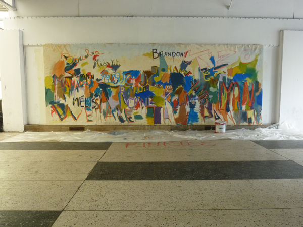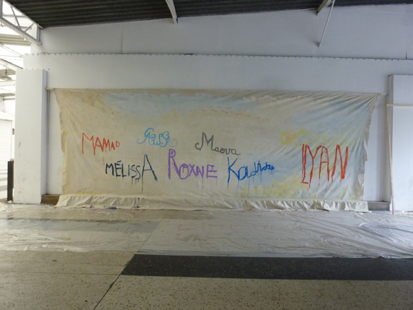 Le principe de ce projet fut réaliser une fresque non pas à la manière du street art mais plutôt en utilisant les techniques traditionnelles de la peinture sur toile. Pour cela, une toile de 7 mètres sur 2,5 mètres a été fixée sur l’un des murs du centre commercial. Les artistes du collectif « We are the painters » ont pensé et mis en place un protocole de peinture qui a permis à chacun des participants de peindre librement à partir de l’inscription de leur prénom sur la toile.