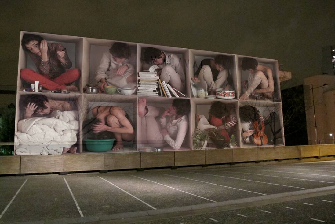 À l’invitation du MAC VAL, le Grande Image Lab, une unité de recherche de l’ESBA TALM (École supérieure des beaux-arts Tours Angers Le Mans, site du Mans) installe un dispositif de projection d’image monumentale pour deux pièces produites pour la circonstance. L’équipe artistique et technique engage le travail de mise en place et de réglage de la projection sur le parvis du MAC VAL, pour projeter sur le grand mur de façade du musée. Fondé pour partie sur l’expérimentation concrète, à l’échelle et sur site, le travail se fait à vue du public : les étapes de travail sont conduites ouvertement, entre 12h et 20h, depuis la mise en place du matériel jusqu’aux derniers réglages, avec le soutien d’Antoine Manichon, opérateur image. Les images seront visibles dans leur qualité pleine en fin d’après-midi.