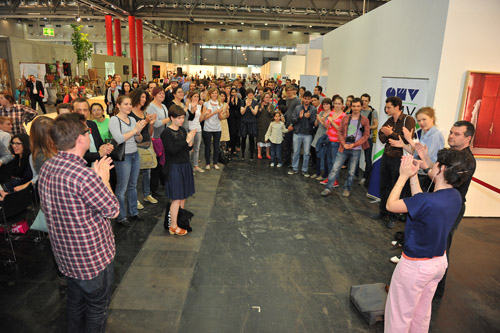 Performance inspirée de la « claque », « Clapping group », d’une durée de vingt minutes environ, engage un groupe de personnes dans un exercice collectif de rythme partagé.